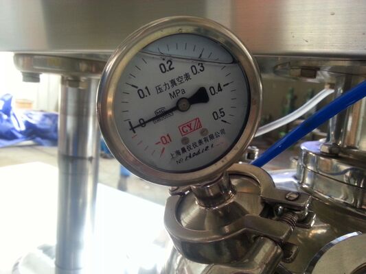 Malzeme, karıştırma malzemelerinin duvara yapışmasını önleyen tencerenin iç yüzeyinde çalışan orta bıçak ve yan sıyırıcı tarafından karıştırılır.Bıçakla karıştırma sürecinde, malzemeler sürekli olarak ezilir, preslenir, katlanır.Daha sonra malzeme, kesme diski ile kesme kılıfı arasındaki güçlü etkileşim ile tekrar kesildiği, kırıldığı ve karıştırıldığı kesme karıştırma ünitesine gönderilir.Malzemeler son olarak 200um~2um'luk küçük topaklar halinde ezilir.Ayrıca emülsifiye etme kabındaki vakum nedeniyle karıştırma ve karıştırma işlemi sırasında oluşan kabarcıklar malzemeden emilir.Eski dolaşım sistemi homojenleştirmeyi daha güçlü hale getirebilir.Tencere içindeki malzeme sadece kontrol vanalarının yön değiştirme durumunda verilebilir.